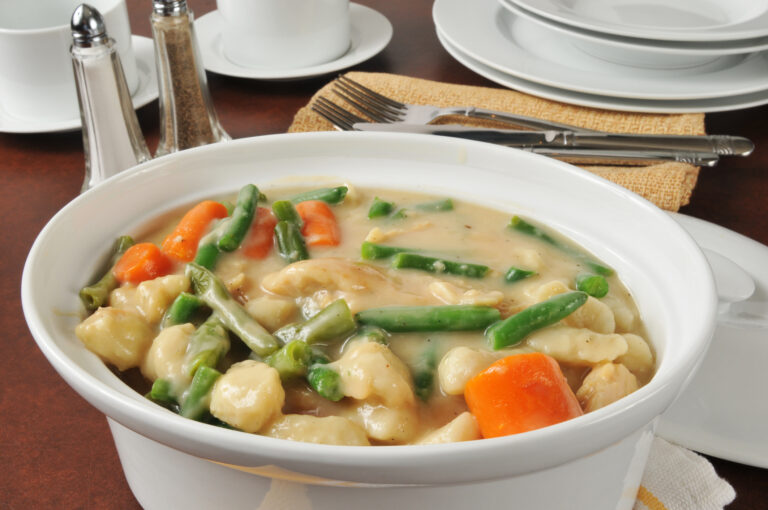 Chicken and Dumplings, cucharadas suaves en un caldo espeso y reconfortante