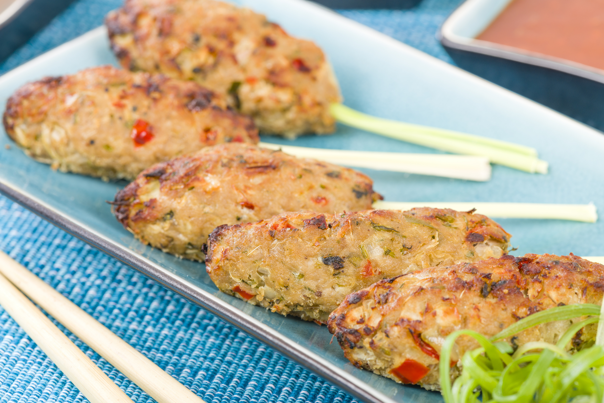 El perfume aparece antes que el sabor. La hierba limón, fresca y cítrica, se mezcla con ajo, salsa de pescado y un toque de azúcar para crear una marinada intensa que penetra la carne. Estas brochetas vietnamitas de pollo, inspiradas en preparaciones tradicionales donde la carne se cocina sobre brasas vivas, combinan equilibrio y contraste.