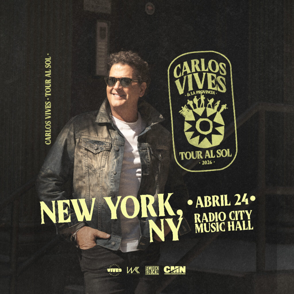 Nueva York se prepara para una noche llena de ritmo, nostalgia y celebración latina. Carlos Vives en Nueva York ya es una realidad, con su esperado regreso el próximo 24 de abril de 2026 en el icónico Radio City Music Hall.
