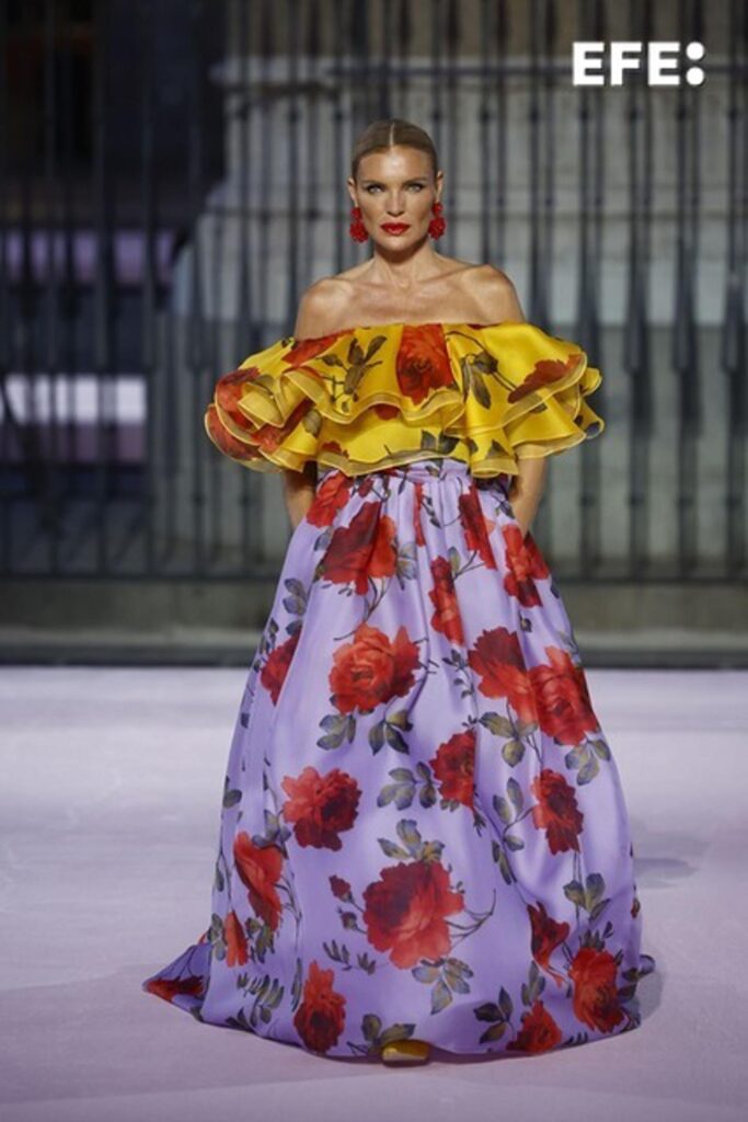 El ambiente se transformó en una celebración castiza, con canciones en español y una pasarela de más de un kilómetro donde modelos como Esther Cañadas, Blanca Padilla y Maika Merino lucieron diseños inspirados en la cultura madrileña. Hubo referencias al Madrid popular en flores como el clavel, la violeta y la rosa del Retiro, además de homenajes al arte de Goya y al cine de Pedro Almodóvar.