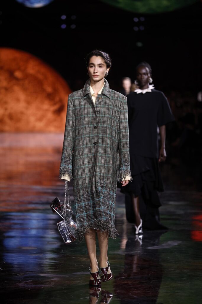Bajo los techos de vidrio del Grand Palais de París, decorado con esferas que simulaban planetas de colores, Blazy marcó un cambio de rumbo con fuerza y poesía. Incluso alteró la tradición, ya que el desfile se celebró un lunes por la noche en lugar del martes por la mañana, como solía hacer la maison.