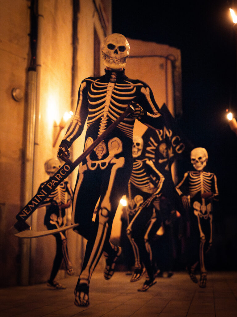 El momento más impactante llega al final de la procesión. Los esqueletos entran en la iglesia y se inclinan ante el Santísimo, simbolizando la derrota de la muerte frente a la fe.