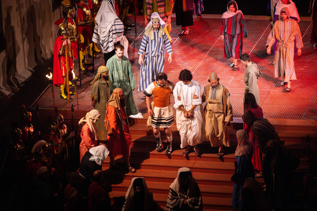 En la Plaza Mayor de Verges, el Jueves Santo, antes de la Procesión, se representan las escenas principales de la Pasión de Cristo, que teatralizan los últimos días de Jesús. Foto: Asociación La Procesión de Verges.