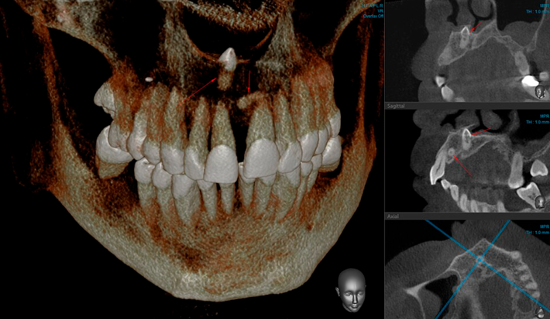 Las imágenes radiográficas suelen revelar situaciones sorprendentes. A veces los dientes adicionales permanecen atrapados dentro del hueso y solo se detectan cuando comienzan a afectar el crecimiento normal de los demás dientes.