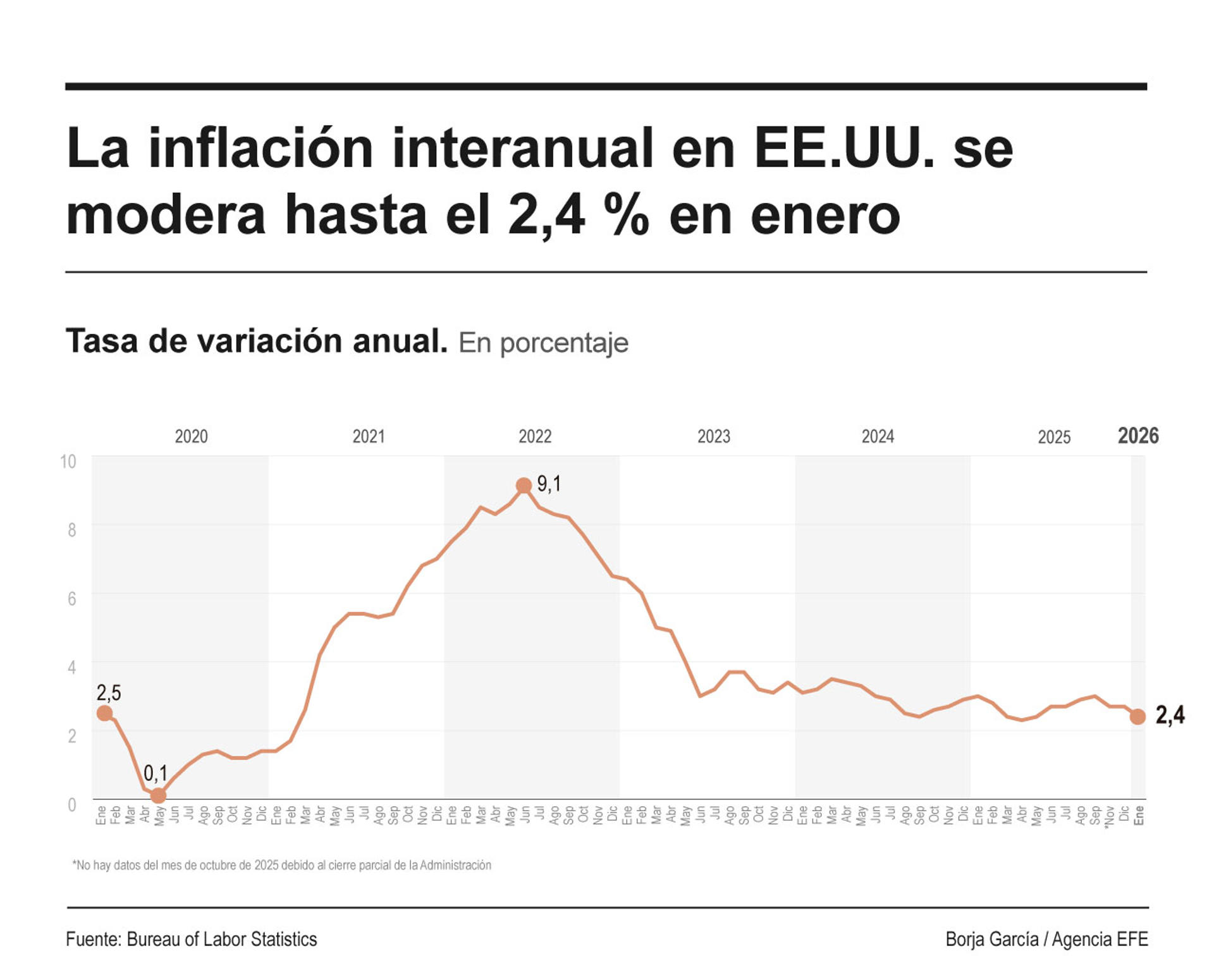 El informe se publicó con retraso debido al reciente cierre parcial del Gobierno federal. Aun así, el dato no alcanzó el 2,5 % interanual que proyectaban varios analistas.