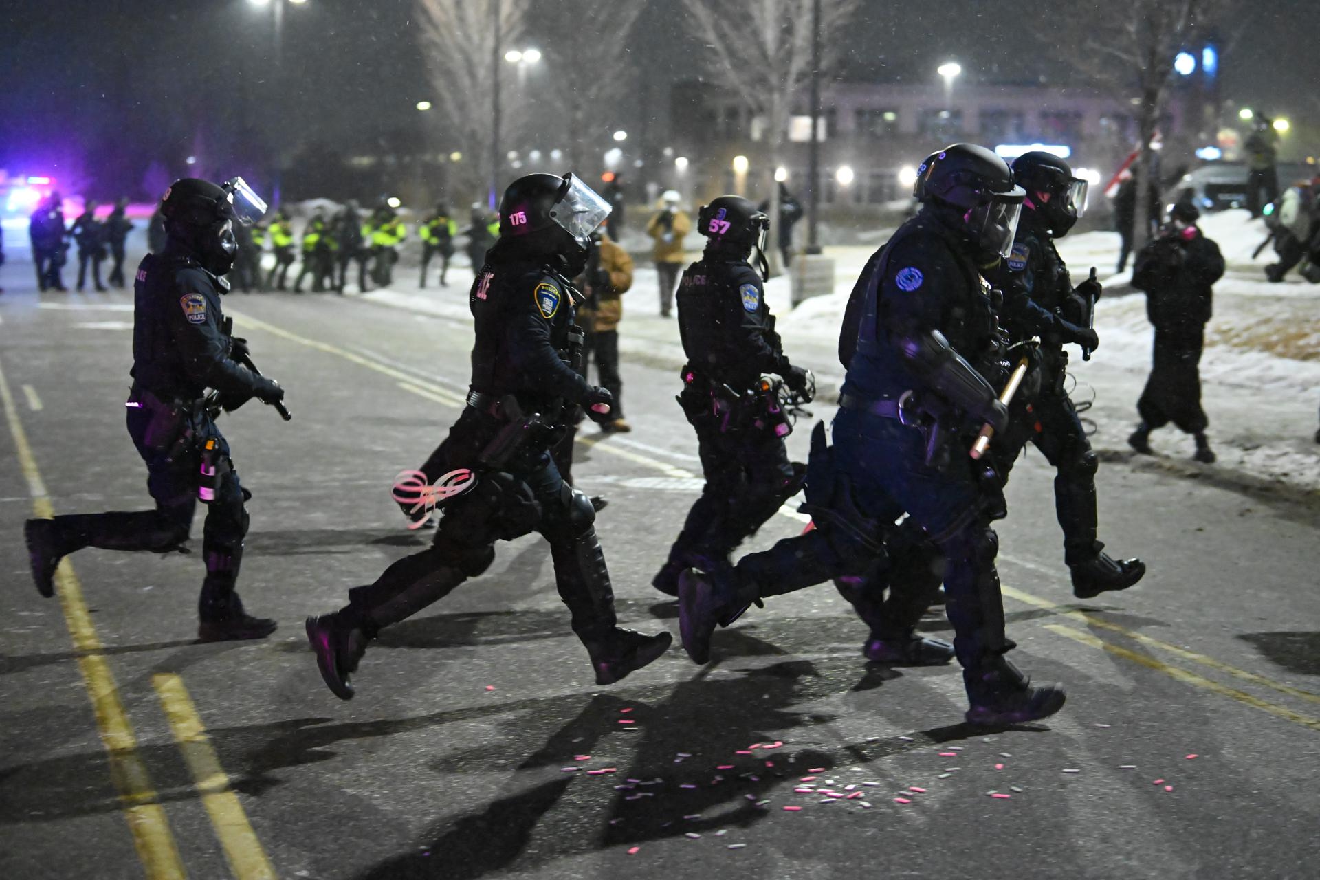 La policía interviene contra los manifestantes que se reunieron frente al hotel donde se cree que se aloja Gregory Bovino, alto funcionario de la Patrulla Fronteriza, en Maple Grove, un suburbio de Minneapolis, Minnesota, EE. UU., el 26 de enero de 2026. Se espera que Bovino abandone Minnesota después de que Alex Pretti fuera la segunda persona asesinada por agentes federales en Minneapolis este mes. (Protestas) EFE/EPA/CRAIG LASSIG