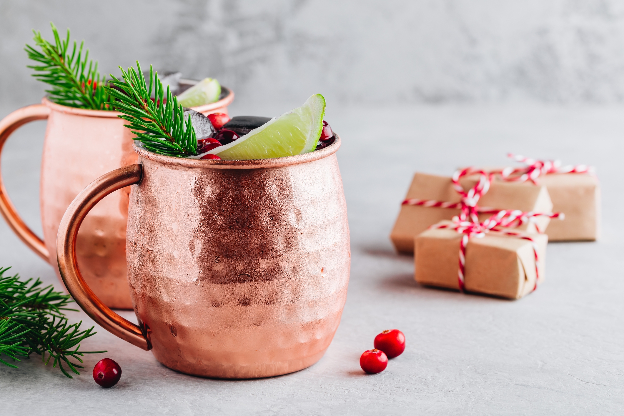 El Moscow mule festivo es una bebida ligera, chispeante y perfecta para dar un aire de celebración sin volverse pesada.