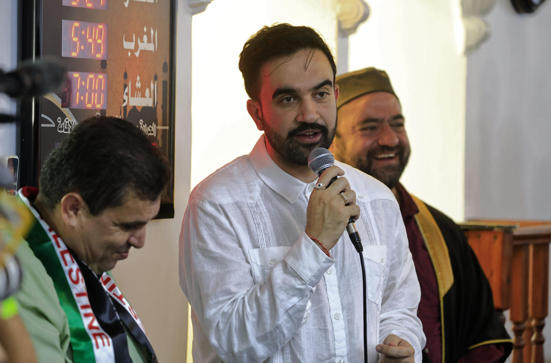 El alcalde electo de Nueva York, el demócrata Zohran Mamdani (c), durante su visita este viernes al Centro Islámico del Caribe en San Juan (Puerto Rico). EFE/Thais Llorca