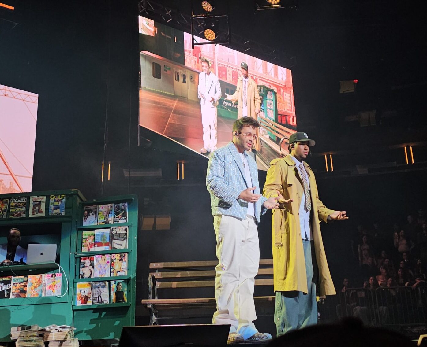 Fueron más de dos horas de espera antes de que el “rey” y el “príncipe” de la bachata aparecieran en un escenario transformado en una calle del Bronx, con un vagón del metro, bancos y un kiosko convertido en cabina de DJ. El público los recibió con euforia y, desde el primer momento, ambos artistas se movieron por el escenario con complicidad y humor.