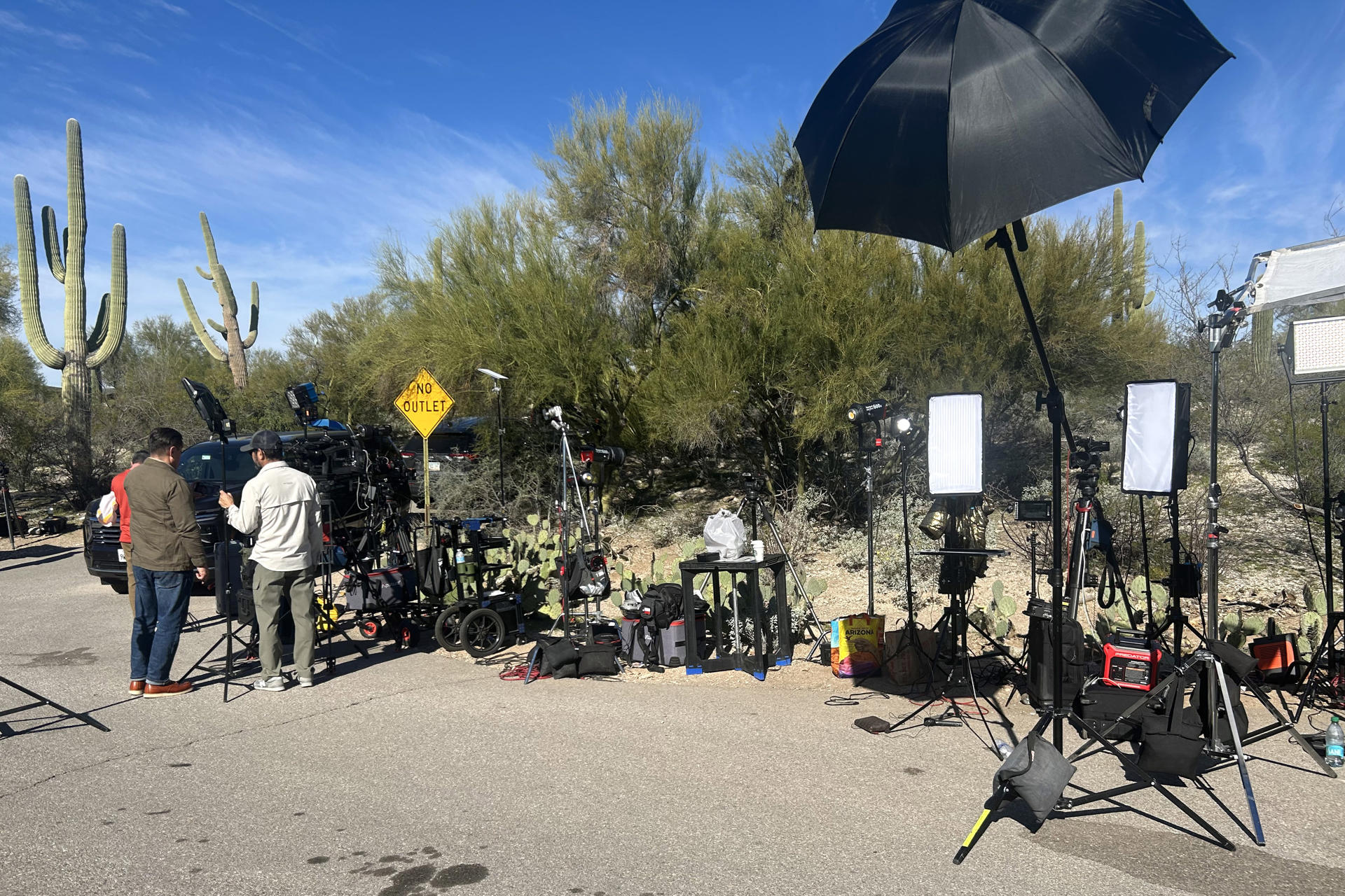 Fotografía de periodistas y equipos afuera de la casa de Nancy Guthrie este miércoles, en Catalina Foothills (Az, EE.UU.). Nancy Guthrie madre de la reconocida periodista Savannah Guthrie desapareció hace once días. EFE/ María León